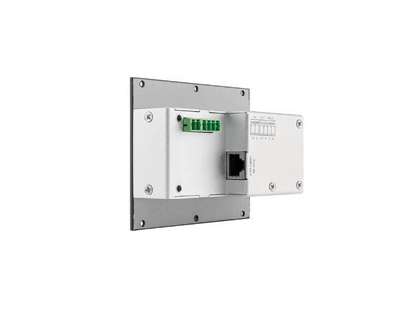 For the installation in desk, wall and floor systems the compact DVM-194-HDBT-T front panel solution comprises the following requirements in a single junction box of only three width units: HDMI®, VGA and mini jack inputs, automatic or manual source switching, HDBaseT output, power supply via PoH (Power over HDBaseT), built-in IR receiver, rear RS232 connection plus ample signal indicators.