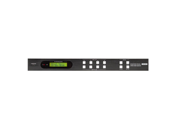 Features DVM-HDBT-MAT44:• Inputs & outputs:4 x HDMI ® Inputs 2 x HDMI ® Outputs 4 x HDBaseT outputs (parallel to HDMI ® ) 5 x IR control inputs (4 x for HDBaseT with PoH 70 m (230 ft.), 1 x general) 4 x IR control output (from HDBaseT) 4 x RS232 interfaces for HDBaseT• HDBaseT lite (max. 70 m (230 ft.): 1080p; 40 m (131 ft.): 4Kx2K)• IR matrix function• Ethernet connection 10/100 BaseT• RS232 connection (SUB-D09)• Fast switching time• Two external 12 V / 5 A power supplies included (1 x device power, 1 x PoH)• 19“ rack enclosure with 1 RU and 245 mm (9.6 in.) depth, 2.7 kg (5.96 lbs.)• Suitable HDBT receiver DVM-HDBT-EX07-R• Supports HDCP 2.2