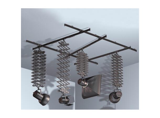 Flexible, compact and perfect for in-studio photography. This overhead lighting suspension helps professional photographers maximise space and compose their shoots quickly and efficiently. Compatible with sky track accessories and still life accessories, this Top System 54 is well suited to large studios where photographers need to get outstanding shots in the shortest amount of time. It features 2 fixed 5-metre long rails, 3 mobile 3-metre-long rails, and 4 pantographs supporting 4 light sources. Easily adjust to a specific length so you can achieve precise results. Eliminate the nuisance of power cables and limited range of motion, all by suspending your lighting accessories overhead. This is particularly handy for photographers working in small studio spaces where there is limited room for composition. The Top System 54 is extremely secure thanks to its rails, carriages, spigots and top ends. All in all, it represents a substantial upgrade from earlier models. Light up your sets without hassle. Never let anything get in the way of the perfect shoot.