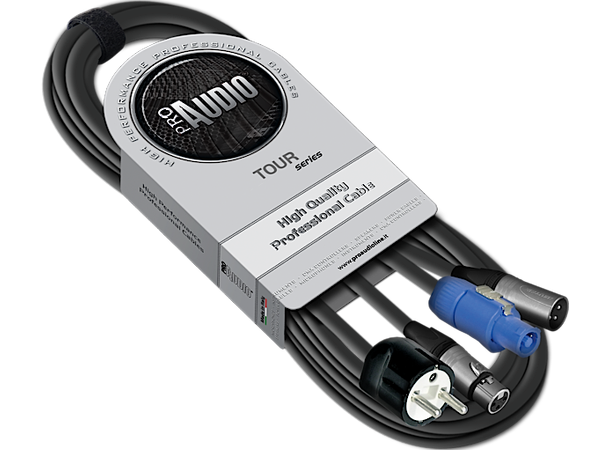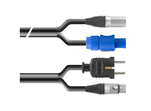 30m, XLRm-XLRf + Schuko/Powercon, Sort