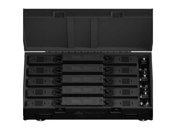 Flight case with internal compartments designed to contain 5 pcs of ECLSOFTLINEARIP.