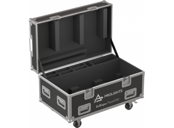 Flight case with internal compartments designed to contain 6 pcs of ECLEXPOFL150 series.