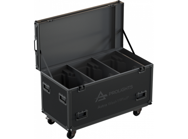 Flight case with internal compartments designed to contain 3 pcs of ASTRAWASH19PIXIP.