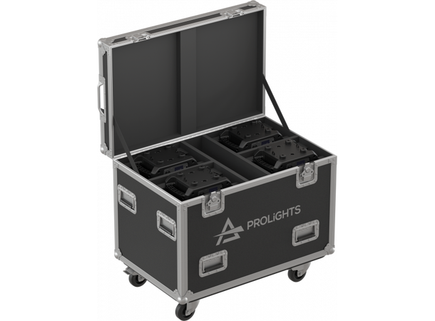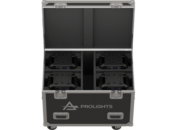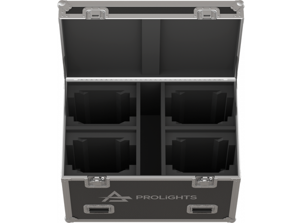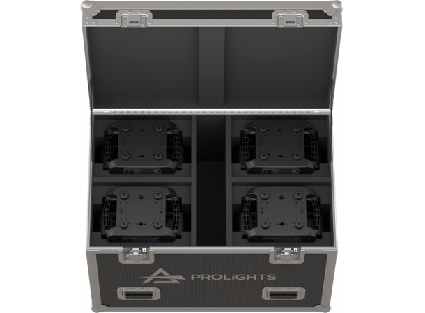 Flight case with internal compartments designed to contain 4 pcs of JETHYB200 / JETSPOT120.