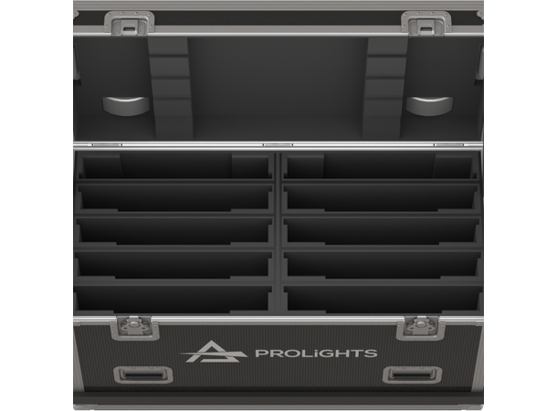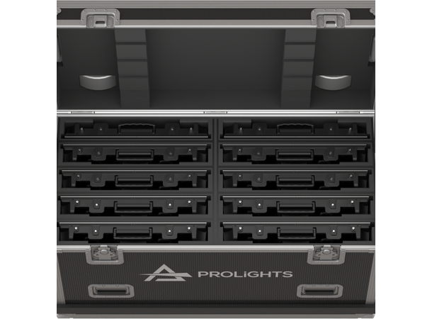 Flight case with internal compartments designed to contain 10 pcs GAMMAX48T1X1WF.