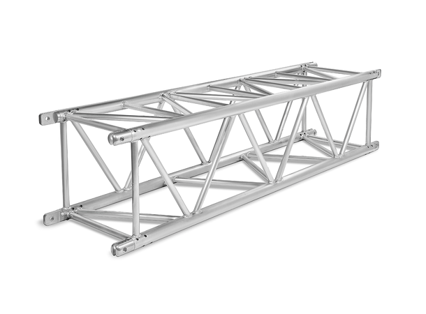 The DT tower is based on D75T mast sections. These mast sections have a four side diagonal webbing with on one side en extra horizontal bracing to facilitate safe and easy climbing of the towers with an appropriate fall protection system. The tower modules are equipped with a pin/fork connection system for easy assembly.While the D75T towers can be loaded up to 30 tonnes at a height of 20m, building a complete grid or ground support system requires more elements, designed to absorb substantial loads. Using the M145RV Mammoth truss you can build spans up to 60 metres, still allowing a centre point load of 2000 kg. For use in ground support systems, Prolyte has designed a sleeve block for the D75 tower, the D75T-010-4-M145RV-0, which combines the D75T towers with the M145RV Mammoth truss. The sleeve block can handle a cantilever point load of 2000 kg. at a 10m cantilever.Furthermore, the sleeve block is equipped with a pinned dead hang system, this facilitates a dedicated dead hang position within the tower and increases the tower loading capacity significantly. Sliding the dead hang pin into its integrated holder within the tower is easy, quick and safe. The base section can be integrated into a 2072 x 2072 scaffolding system and creates integral stability for the tower section, which results in an increase of the tower capacity. It features integrated dedicated attachments for guy wires and lifting points.