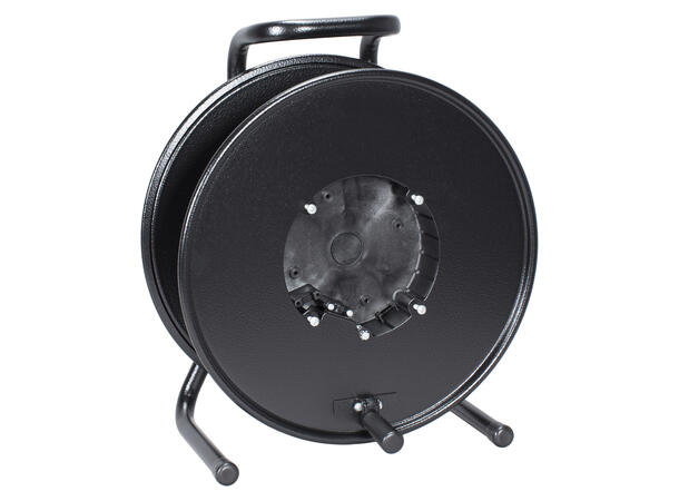 or anyone else for that matter. These are the official cable reels for musicians, soundmen, and broadcasting technicians. The handle is so constructed that there is plenty of room between you and the reel, therefore your legs will never get hit. These reels are resistant to chemicals, gasoline, and oil. All reels are equipped with a brake. They have a large winding core, a cable infeed resistent to bending, and an effective strain relief for sensible cable handling. Models GT310 and GT450 have a rell made of almost indestructible black solid rubber. It is especially recommended for everyday use on stage.