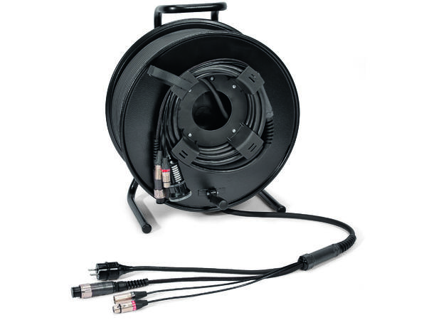 is here for you with 4 x OM3 multimode, 3 x 2.5 mm² (16 A/ 240 V) and 2 x 2 x AWG24 for 4 x control or 2 x AES/EBU. With its 13.4 mm the OCTOPUS HYBRID 443 is extremely compact and so lightweight that we can offer 100 m systems on the compact HT481 reel series. These are optionally available with HAN-ECO multiconnector and/or spliced, e.g. with the HI-FIBER4+powerCON+XLR.
