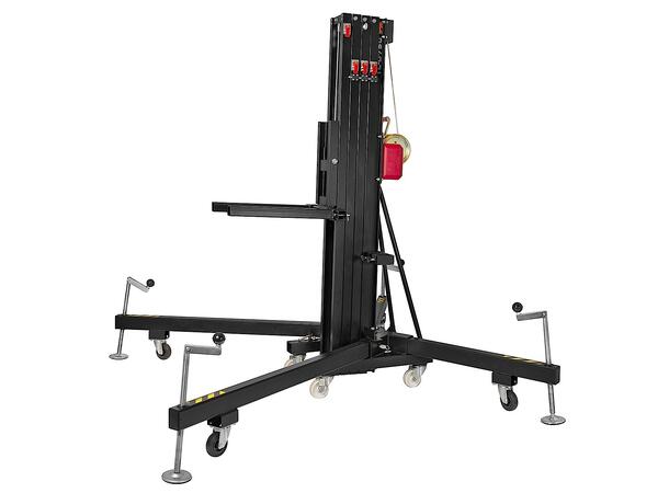 Max. height 6.5m (21.3′) Max. Load 300Kg (661 lb) Safety ALS auto-lock Work surface 2.2 x 2.2m (7.2 x 7.2′) Folded height 1.98m (6.5′) Winch 900Kg Adaptor Front Load (Includes Forks) Weight 179Kg (395lb)