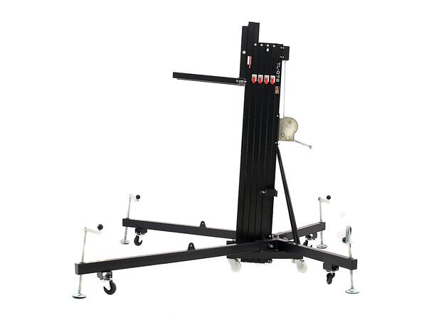 Max. height 8m (26.2′) Max. Load 280Kg (617 lb) Safety ALS auto-lock Work surface 2.2 x 2.2m (7.2 x 7.2′) Folded height 1.98m (6.5′) Winch 900Kg Adaptor Front Load (includes forks) Weight 203Kg (448lb)