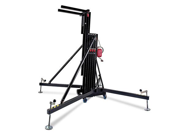 Max. height 5.8m (19′) Max. Load 300Kg (662 lb) Safety ALS auto-lock Work surface 1.9 x 2.1m (6.2 x 6.9) Folded height 1.58m (5.2′) Winch 900Kg Adaptor 0,75m Array Forks included Weight 165Kg (364lb